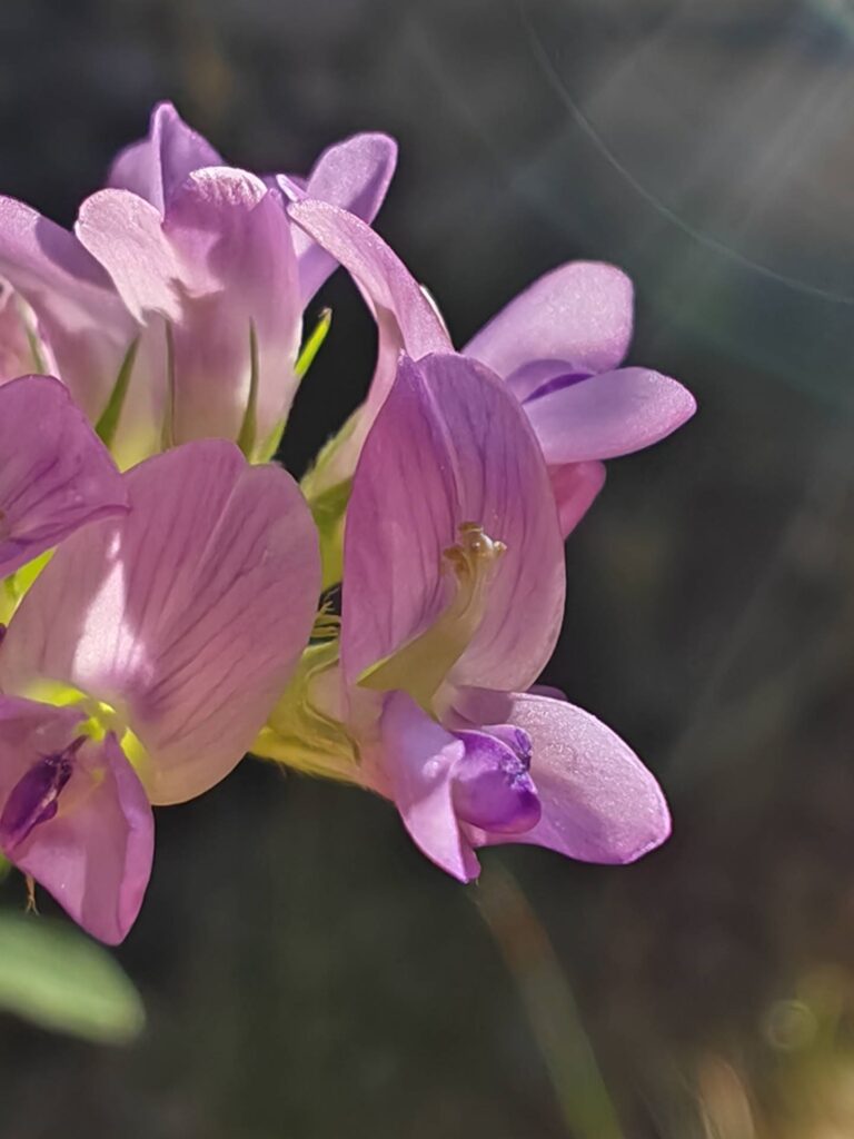 Flowers are purple to violet (rarely white or yellow), papilionaceous, measuring 8-12 mm in length, and arranged in dense racemose inflorescences of 10-35 florets. Peduncles are elongate, exceeding the subtending leaf. The standard petal is longer than the wings and distinctly longer than the keel.